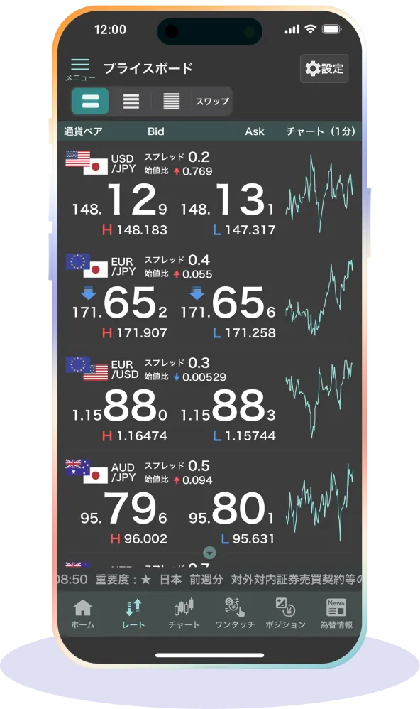 ※高金利の通貨を売り、低金利の通貨を買うとスワップポイントの支払いがあります。