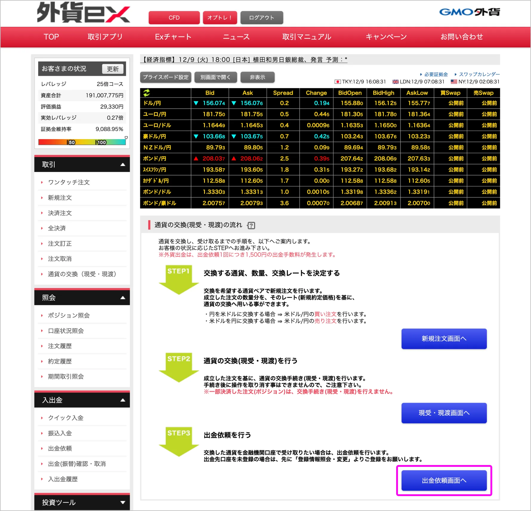 「出金依頼画面へ」をクリック。