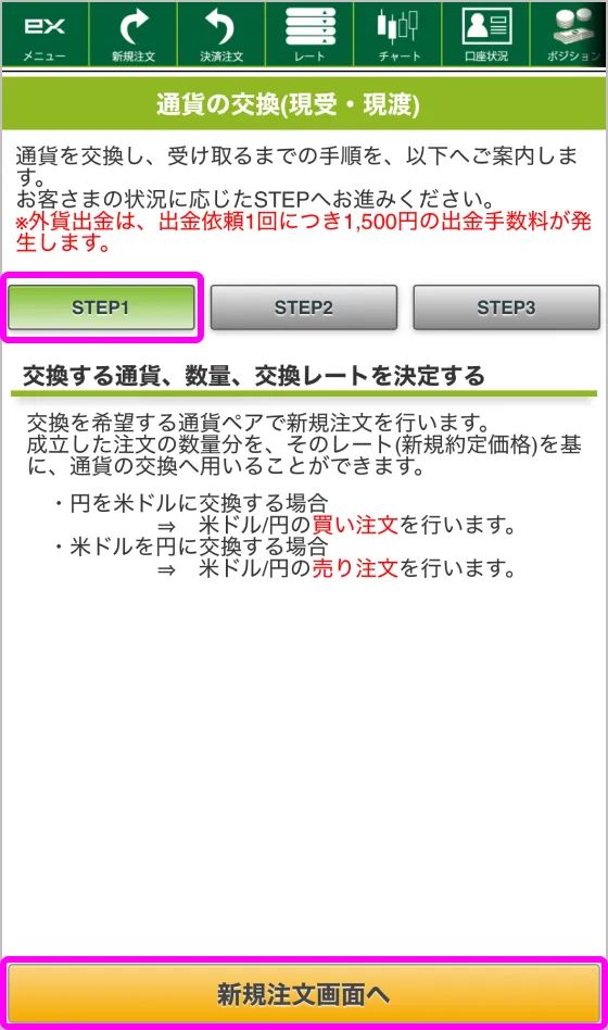※保有ポジションを両替する場合は、新たにポジションを建てる必要がございません。[STEP2]へお進みください。