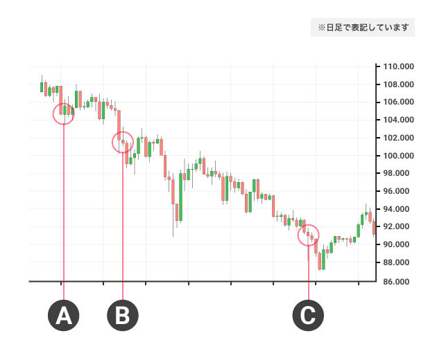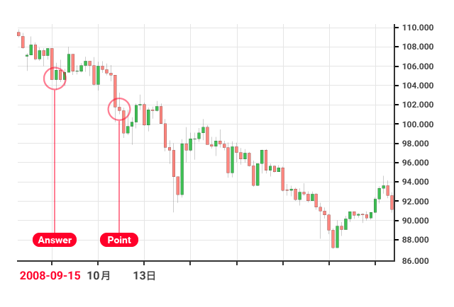 Aが2008年9月15日(月)です。多くのトレーダーにとって忘れられない日でした。