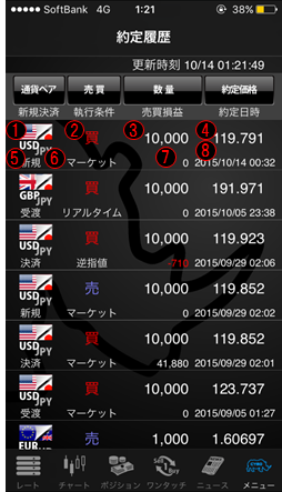 ここでは過去の約定の履歴が確認できます。