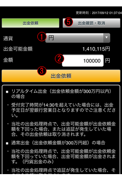 ここでは、外貨ex口座の資産をお客さまの出金口座に出金する依頼を行うことができます。