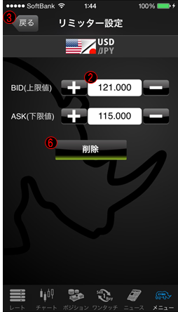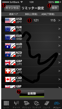 リミッター設定は、レートが設定したプライスに達しますと、あらかじめ登録してあったメールアドレスに通知するサービスです。
