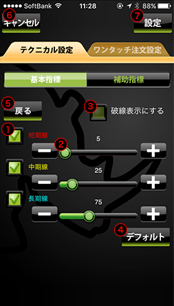 詳細設定をタップすると、指標のライン値や破線表示の設定をすることができます。